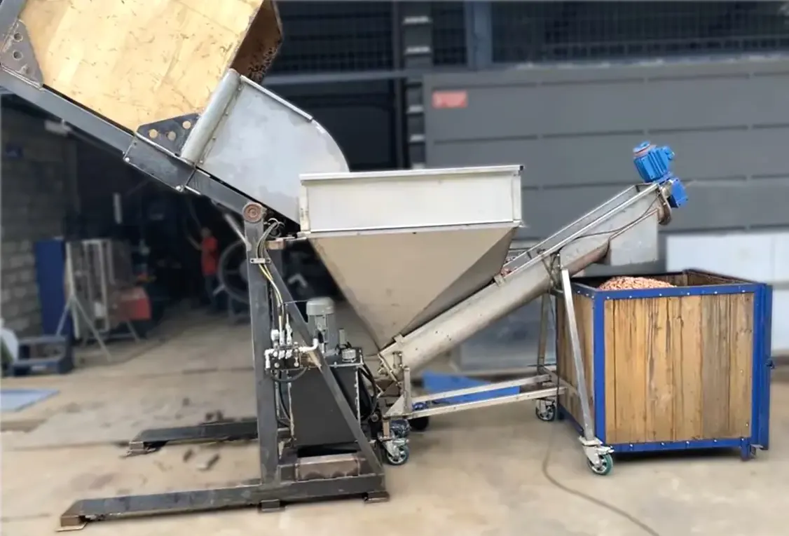 El Transportador Helicoidal con Artesa U y Ceja Formada está diseñado para complementar el Volteador Hidráulico de Cajas, permitiendo transportar eficientemente el cacao fresco hacia la caja de fermentación. Este equipo es esencial para optimizar el flujo de material en el proceso de producción.