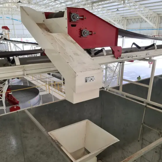 La banda transportadora de carga al granel aérea está diseñada para transportar productos a granel de manera eficiente, alimentando secadoras homogéneas, silos, fosas de almacenamiento, y más, a través de un carrito descargador mecánico (tripper).